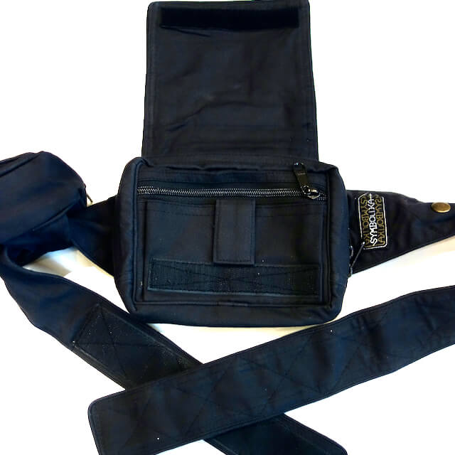 Insgesamt zählt die Gürteltasche 8 Fächer und ist aus robuster Baumwolle (Canvas) gefertigt.