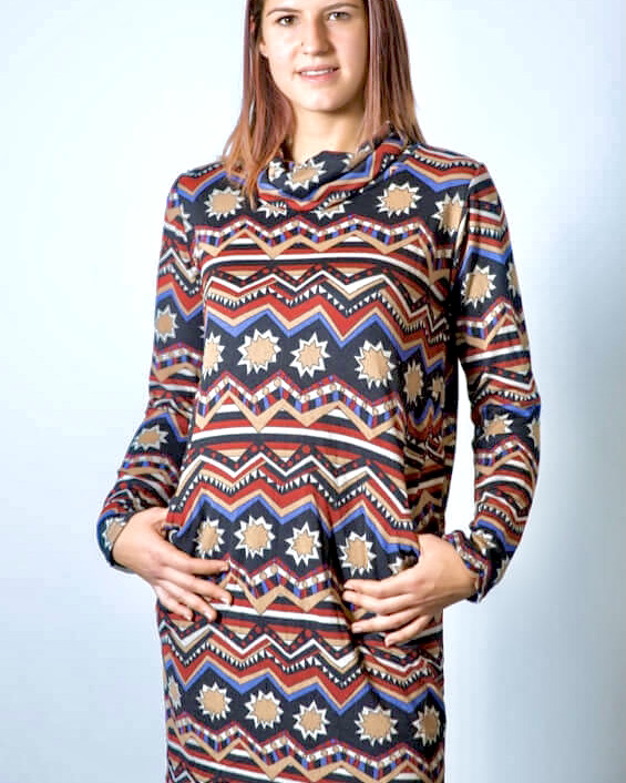 Unser Easy Winterkleid ist ein kuscheliges Langarmwinterkleid mit Taschen und lockerem Rollkragen.