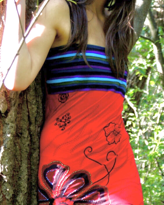 Längeres Sommerkleid (über Knie) mit verstellbaren Trägern und Blumendruck