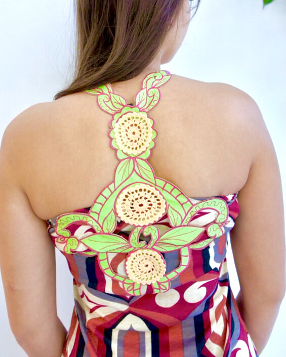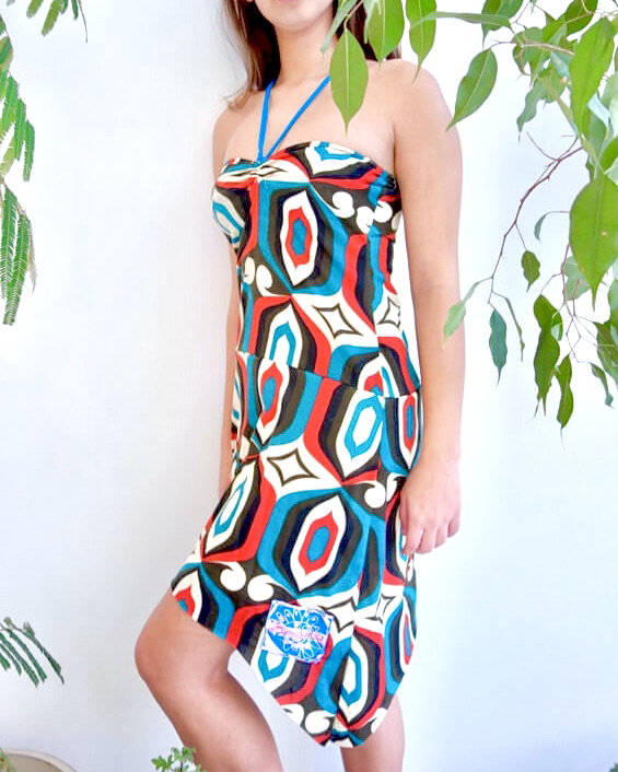 Kleid mit seitlichen Zipfeln und aufregendem Rückenteil im Retrodesign