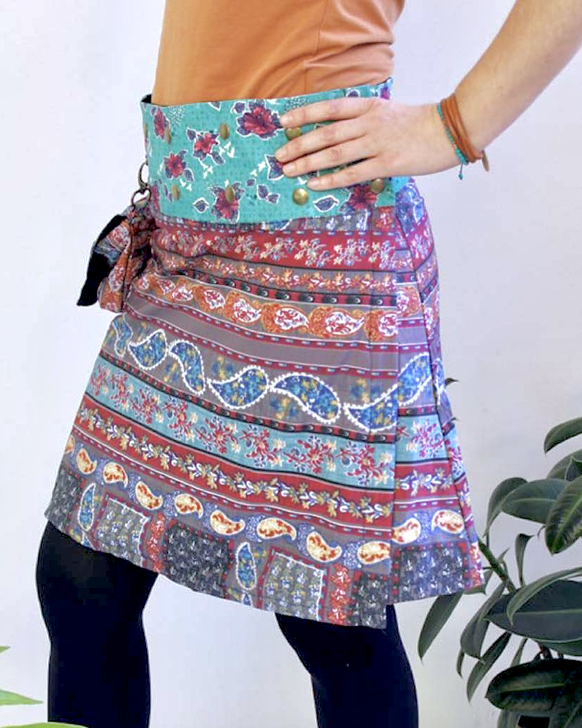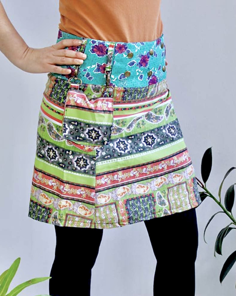 Wickelrock mit Druckknöpfen verstellbar und abnehmbaren Täschchen