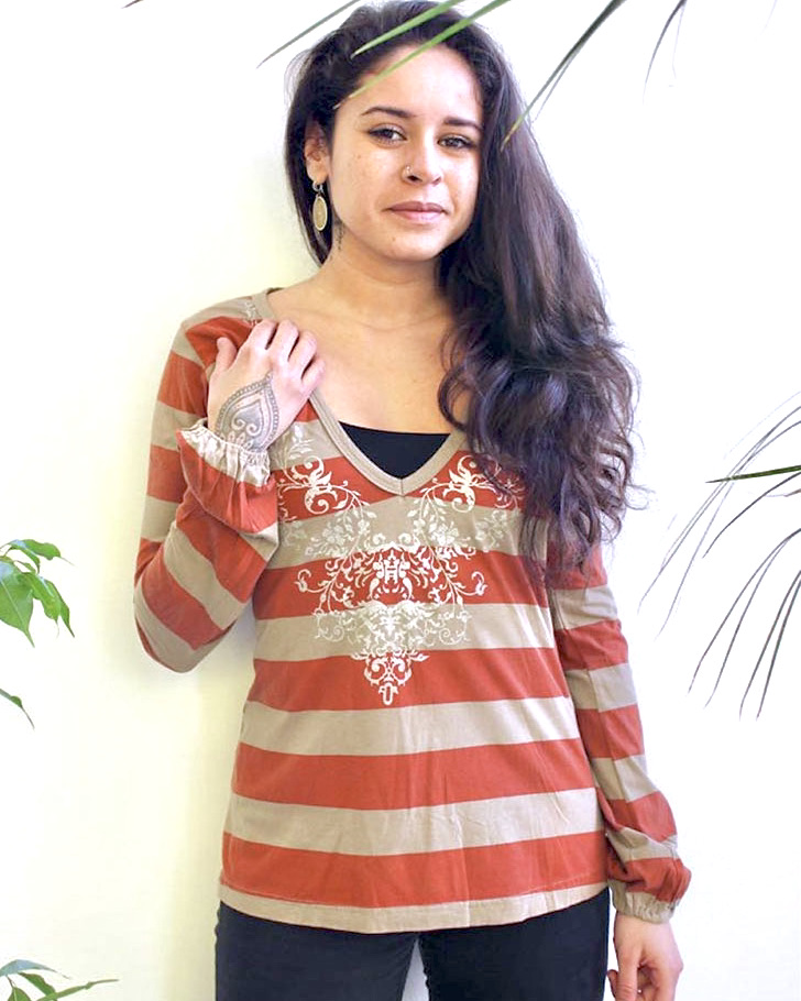 Langarmshirt mit Silberfarbenen Druck und V-Ausschnitt