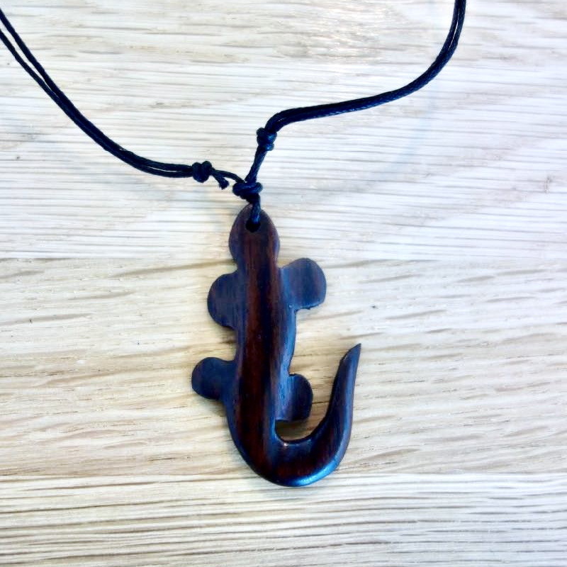 Kette mit Holzanhänger in Form eines Gekkos auf einem verstellbaren Baumwollband